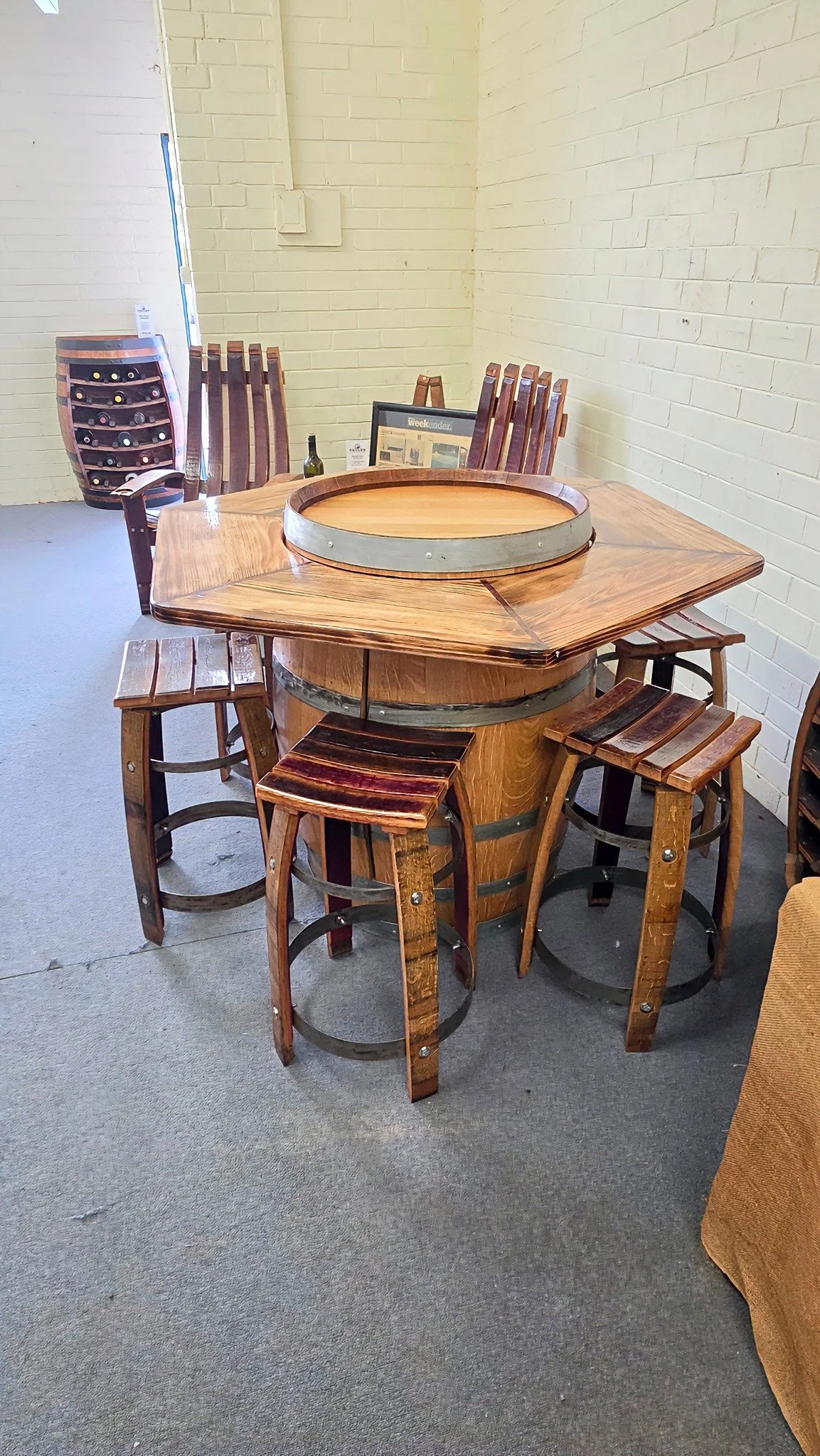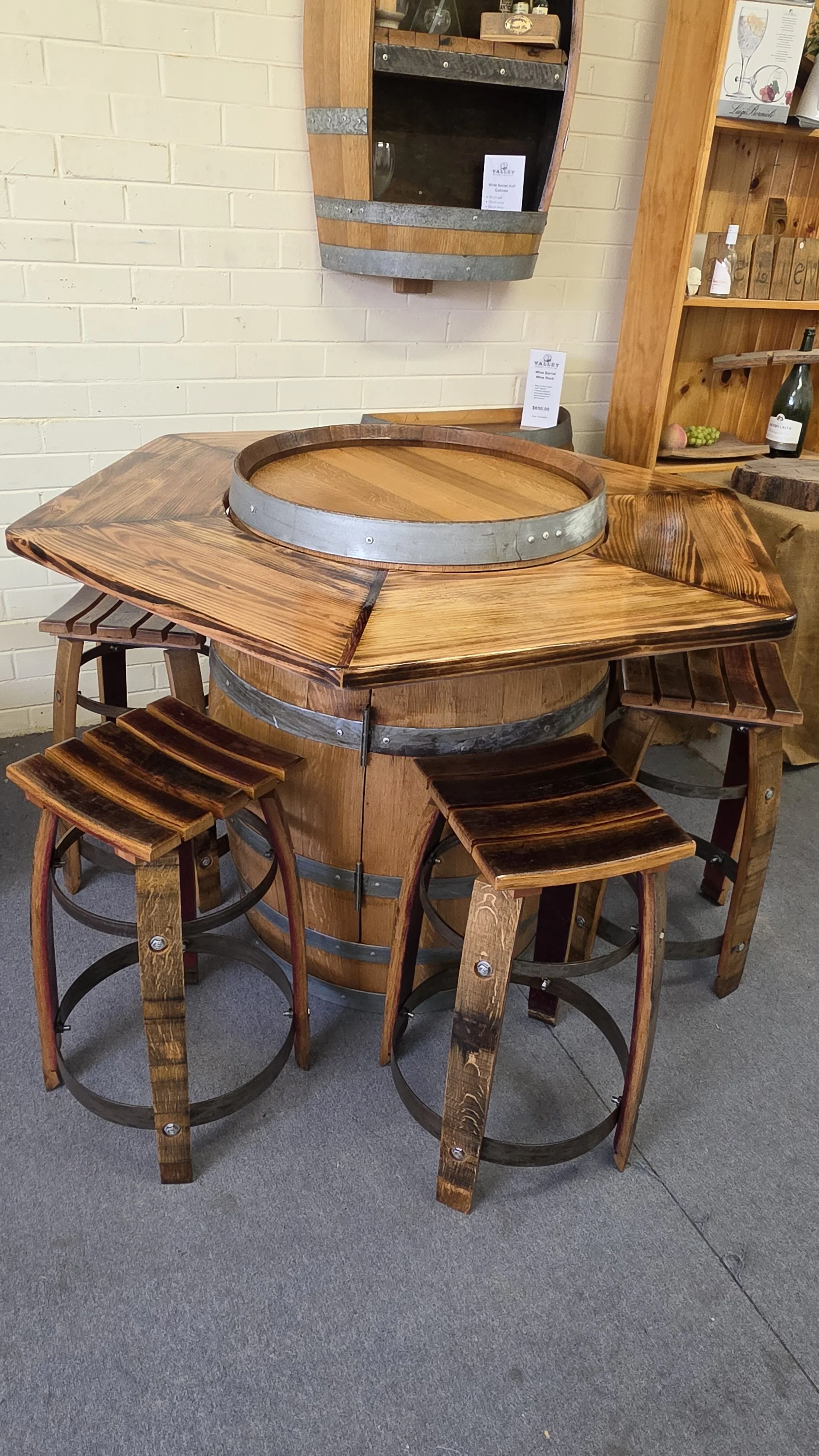 Wine Barrel Bistro Table & 6 Stools – Handcrafted Wine Barrel Furniture Australia